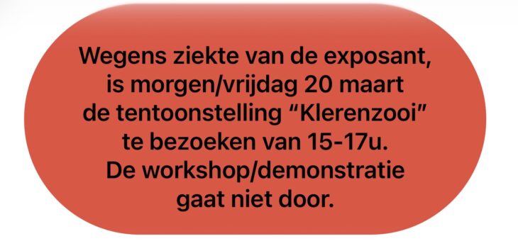 ”Klerenzooi” met werk van Rixt de Boer, zat 14/3 va 16u, vrij 20/3 13-16u, zat 28/3 15-19u